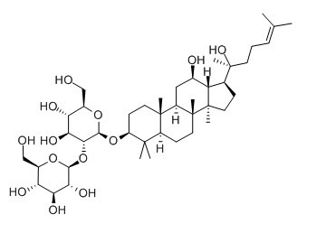 人參皂苷rg3是中藥人參中的分子成分,是運用現(xiàn)代科學的提取手段從人參皂苷粉中分離出來的單一成分。用分子式來表達為: